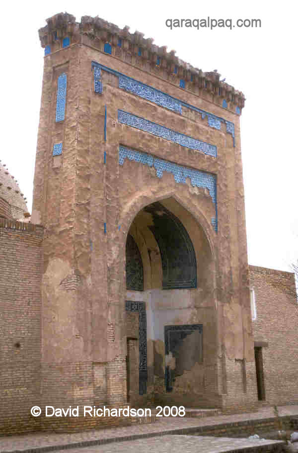 along the top of the portal apparently praise Qutlugh Timur, the governor of Golden Horde Khorezm from 1321 to 1333, who patronized the building of the