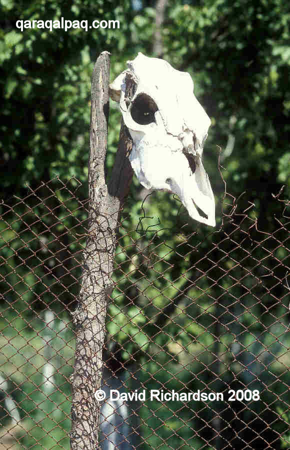 The skull of a sheep protects a farmer's field from harm, Kegeyli rayon 2005.