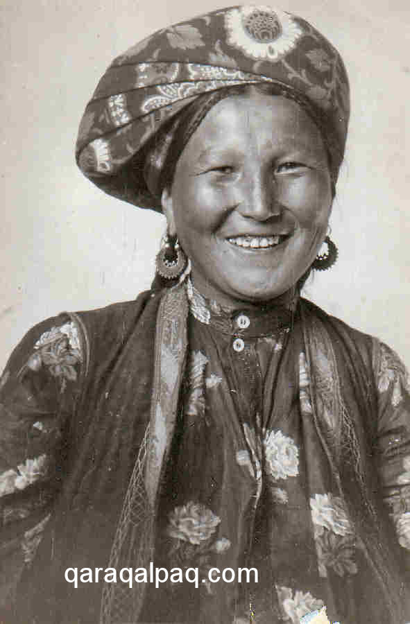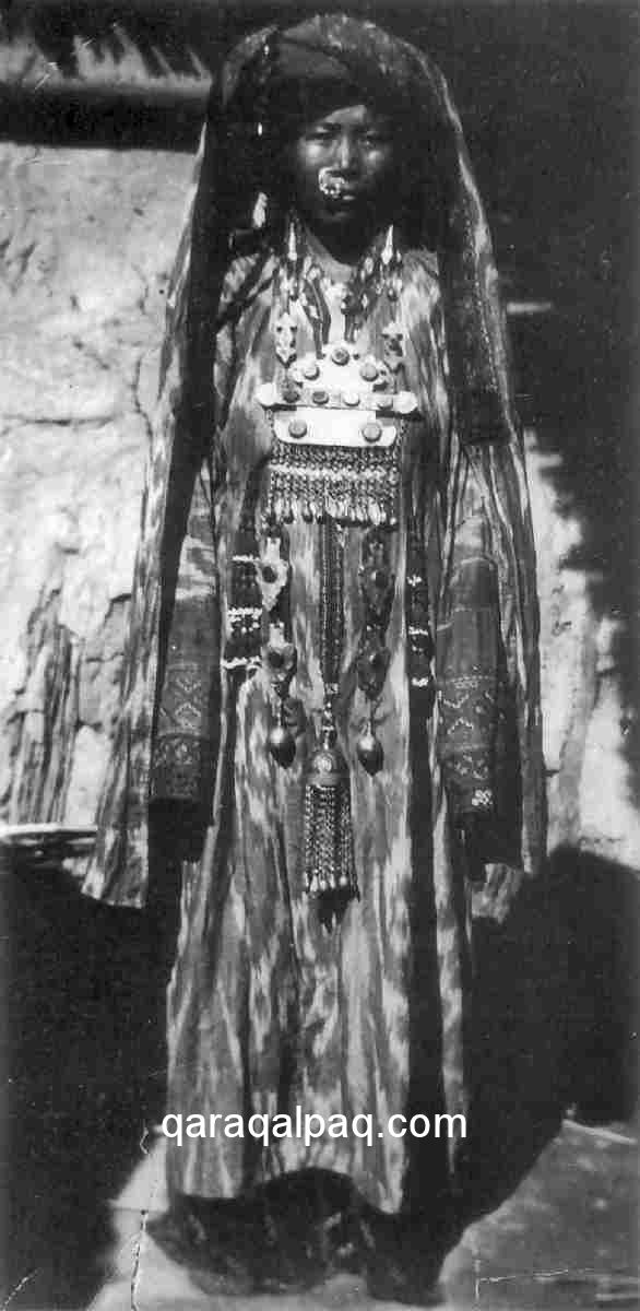 Qaraqalpaq woman in everyday clothing in the mid 1930s.