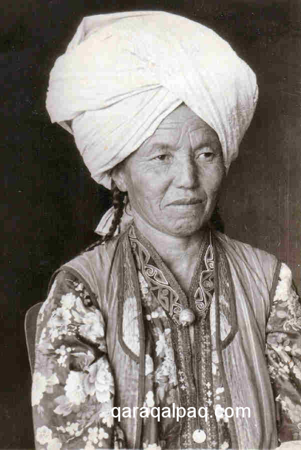 Qaraqalpaq woman in everyday clothing in 2004.