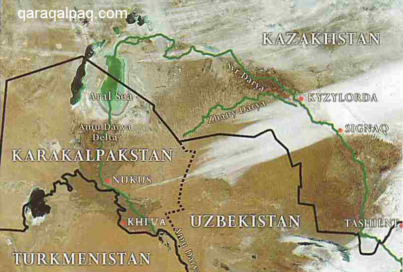 which showed Qaraqalpaqs occupying the region between the Emba River and the middle Syr Darya and to the north of the Caspian and Aral Seas.