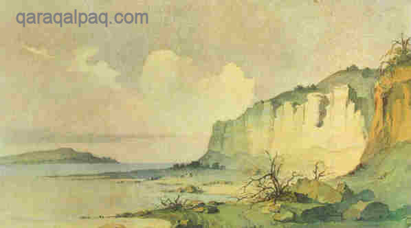 |   |  View of hilltop Fort Raim from the shipyard on the Syr Darya.A watercolour painted by Taras Shevchenko in the summer of 1848.