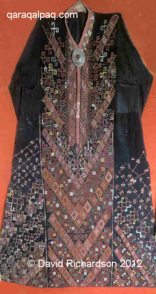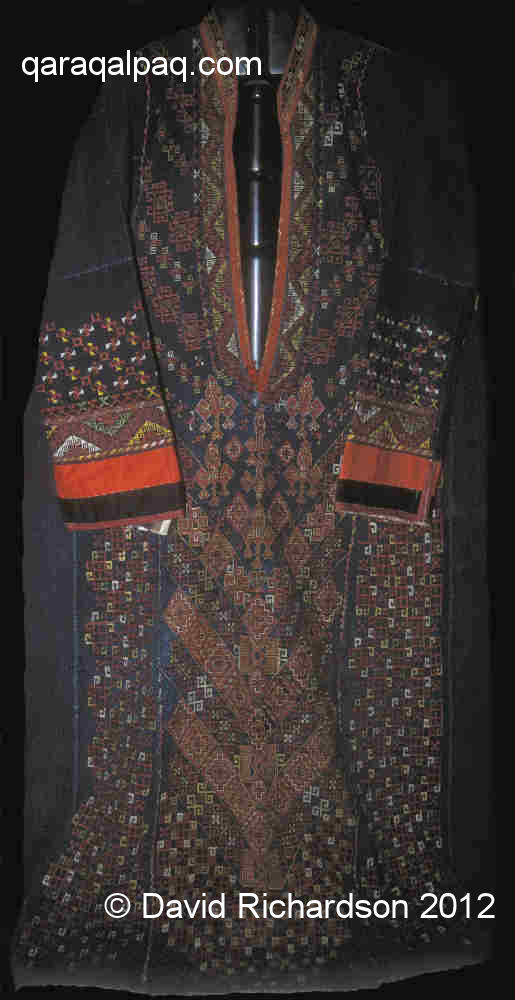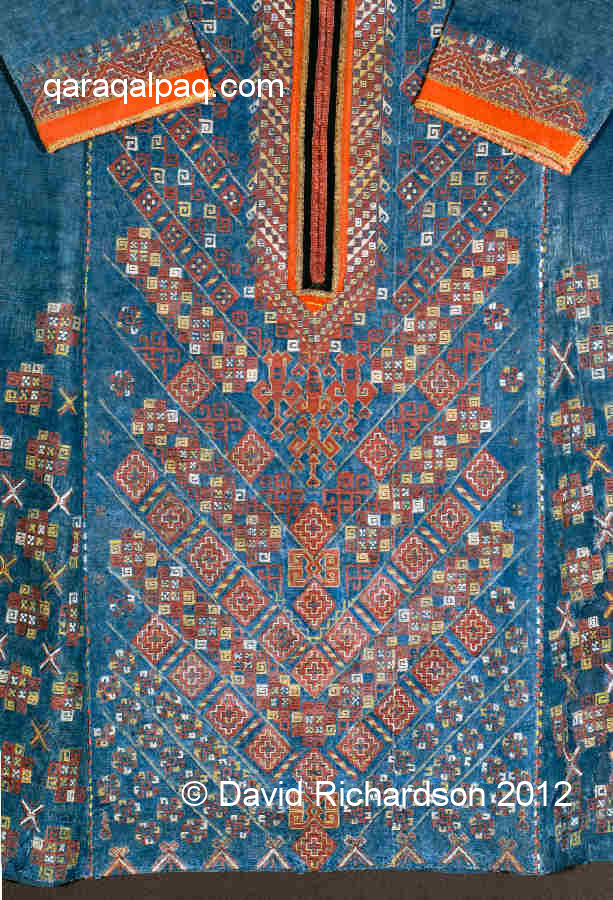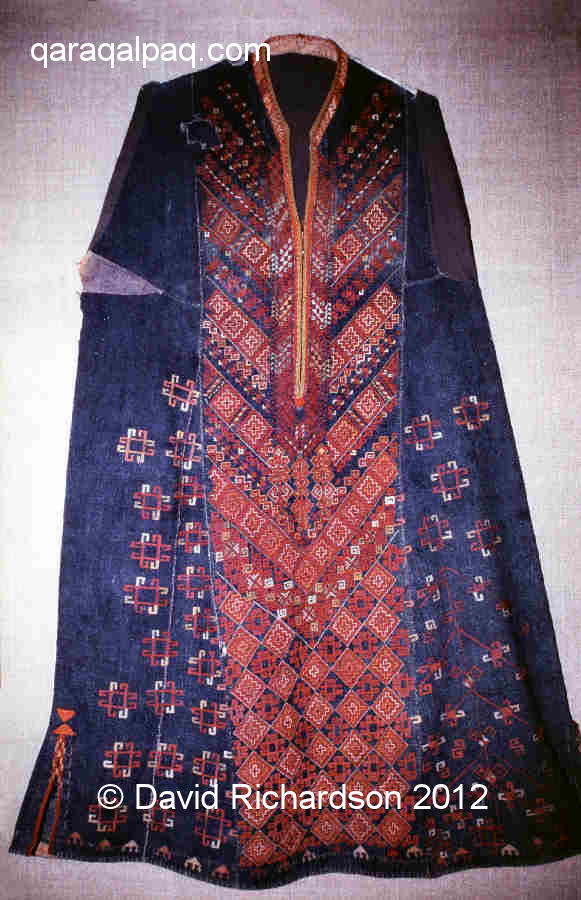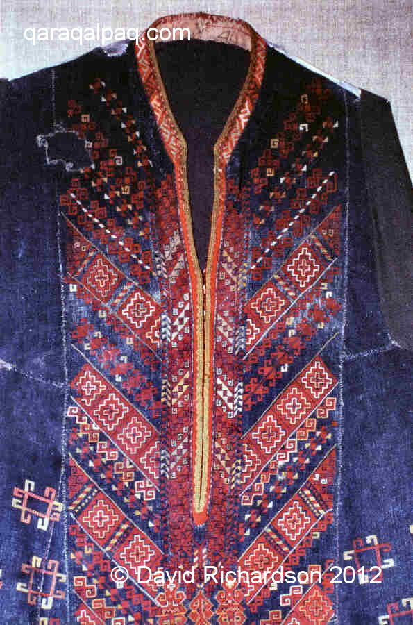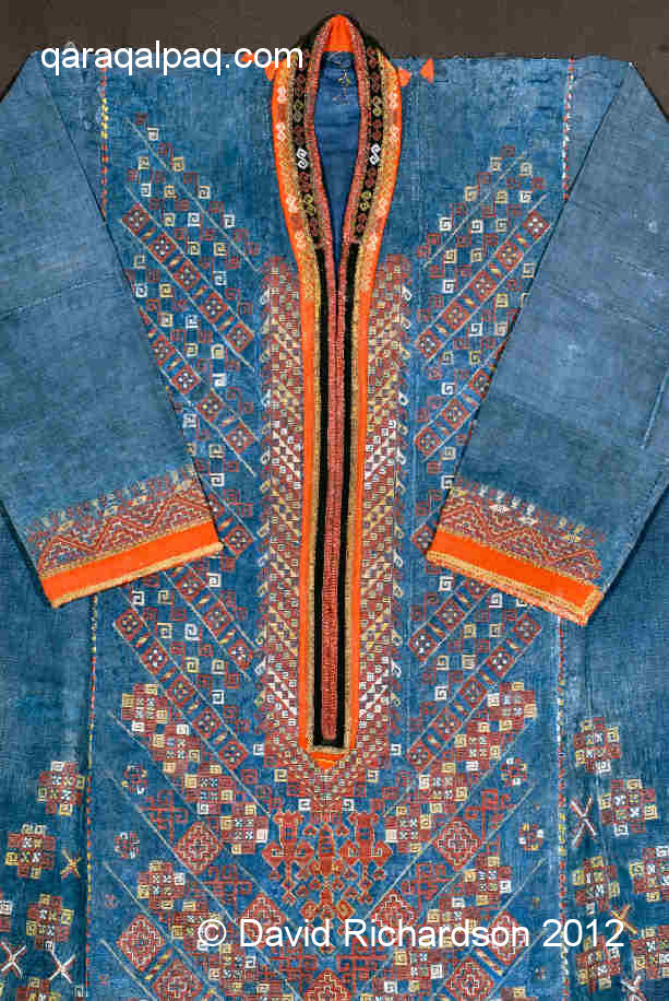 The ko'k ko'ylek is unique to the Qaraqalpaqs. No similar item of female costume or style of decorative embroidery has been found among