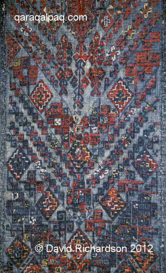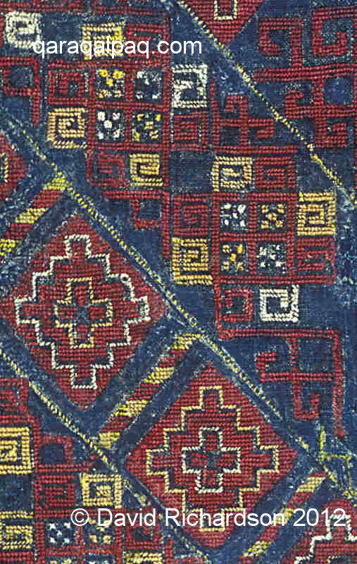 lower sections of the two front side panels are covered with a lattice of more segiz mu'yiz and sometimes other motifs. In some examples