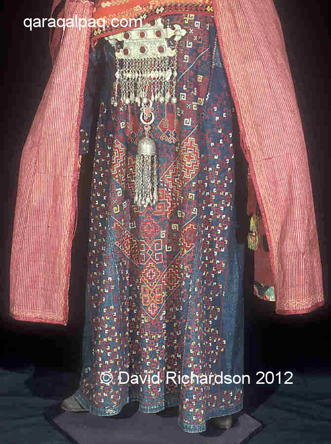 traditional for a Qaraqalpaq widow to wear a plain undecorated blue dress. Indeed there is a Qaraqalpaq folk song that tells a story about