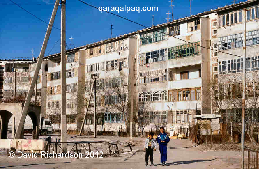 This photograph highlights the arbitrary division between the populations of Qaraqalpaqstan, northern Turkmenistan, and the viloyat of