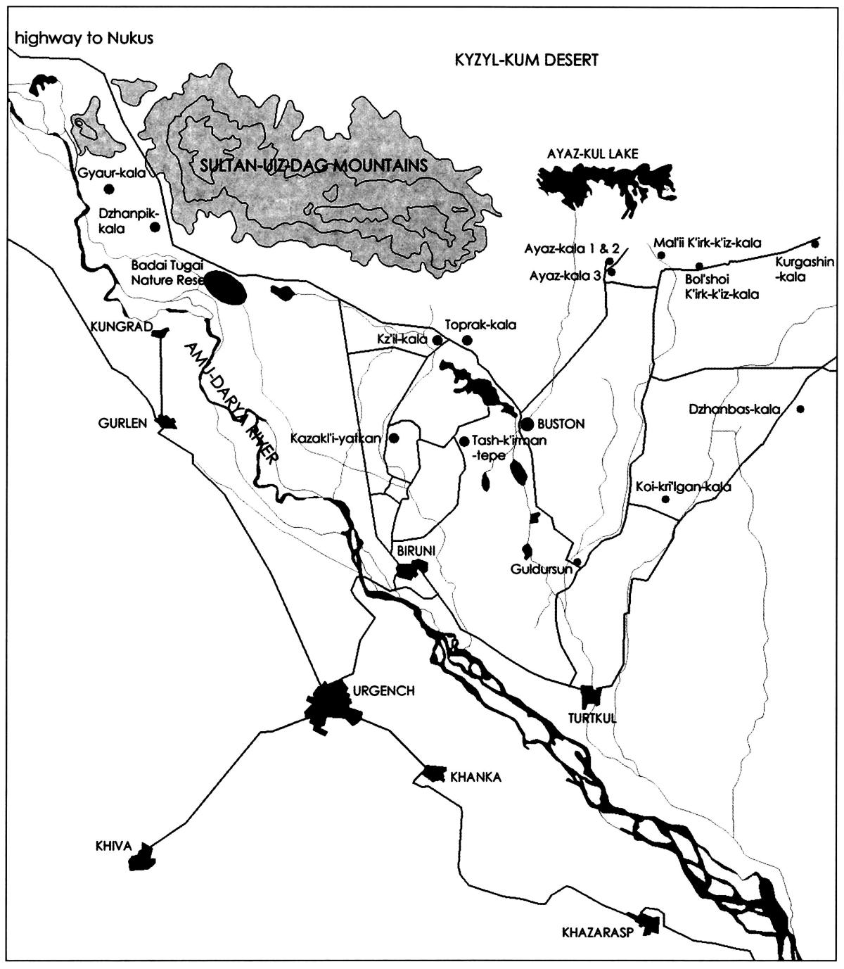 The region with the densest concentration of qalas - the southern part of Qaraqalpaqstan on the right bank of the Amu Darya - is also the
