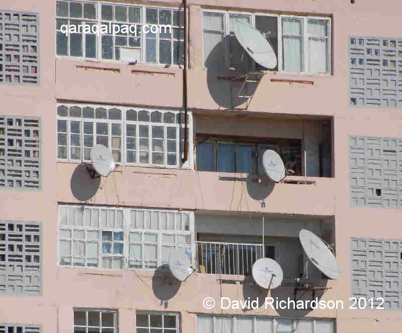 Qaraqalpaq TV broadcasts for just 5 hours per day, 2½ hours of which are cartoons and films. The production quality is very low. The same news