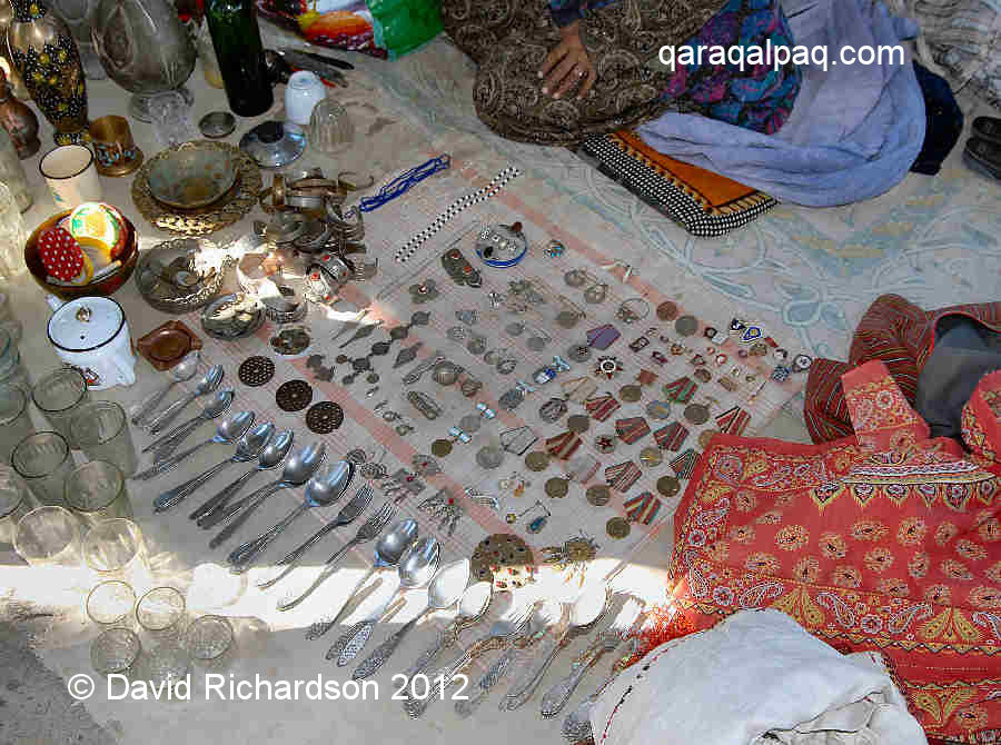 Spoons, medals, and oddments of jewellery for sale at the Central Bazaar.